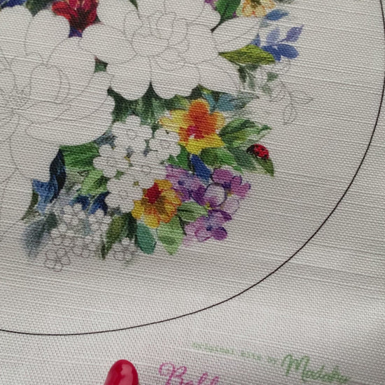 This beautiful design is printed on Luxury linen and shows the painted elements with stitch lines to follow. The design is suitable for an 8inch hoop and will come with a dmc colour guide.