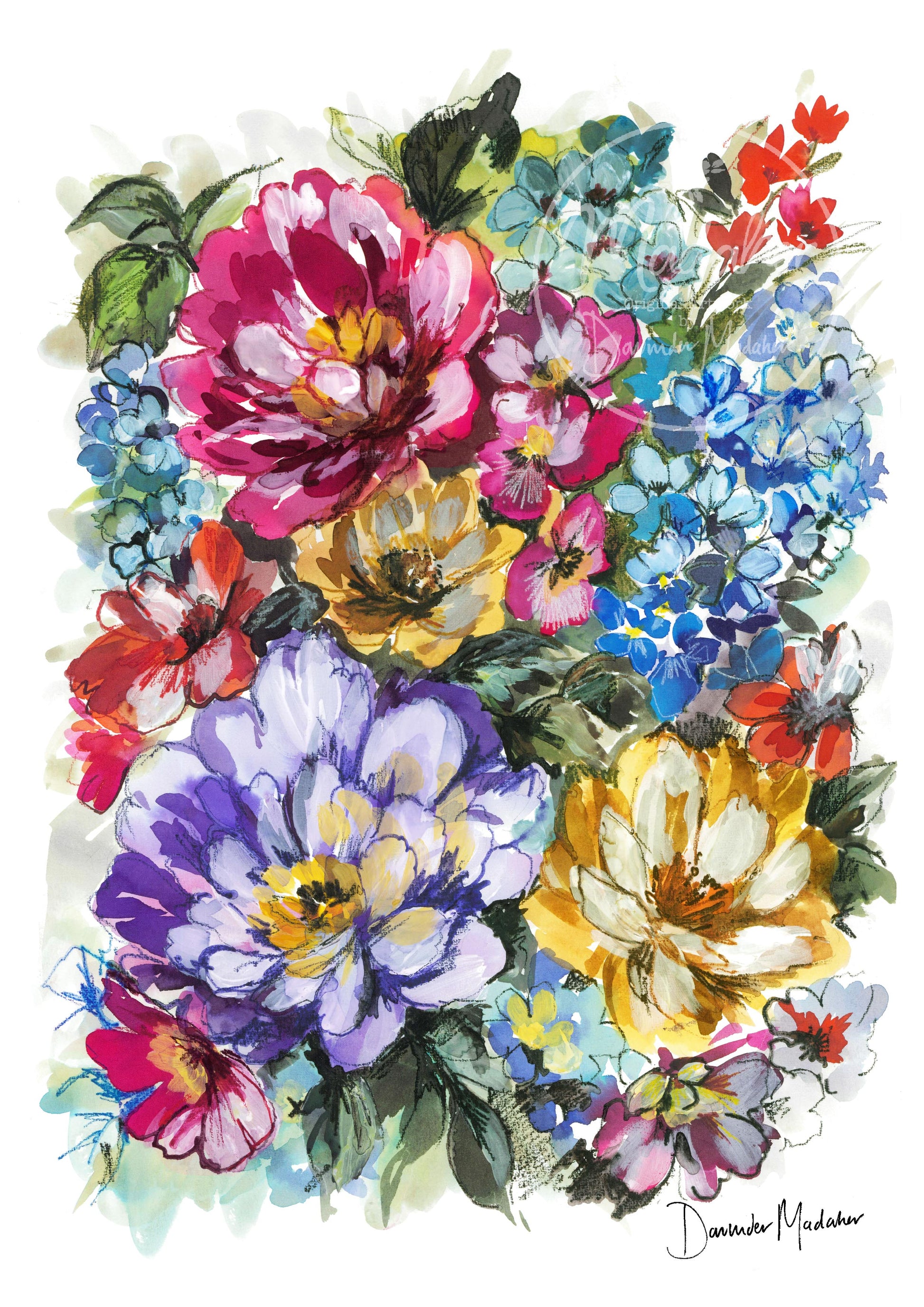 The process of putting ink and paint to paper allows me to express what I see and feel. I try and caputre the sense of walking through the Gardens and all the wonderful colours and subtle tones that I see. I also try and capture the joy these flowers bring to me because Nature truely is beautiful.